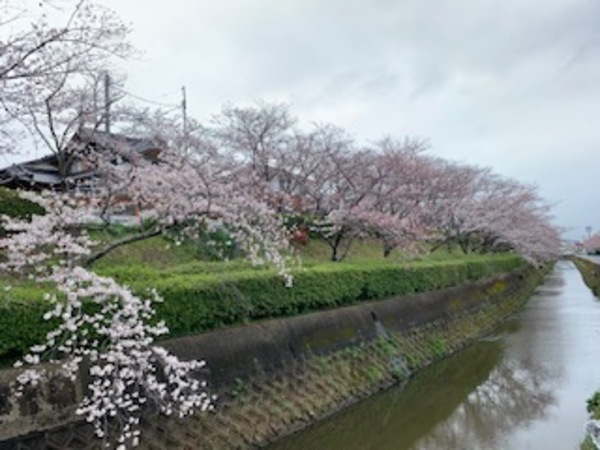 県道24号福岡東環状線沿いの桜並木も五分咲きです。