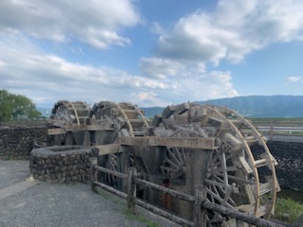 今まで、回っている水車しか見たことがなかった虎雄。水に濡れてない水車が白木のままなのは知りませんでした。