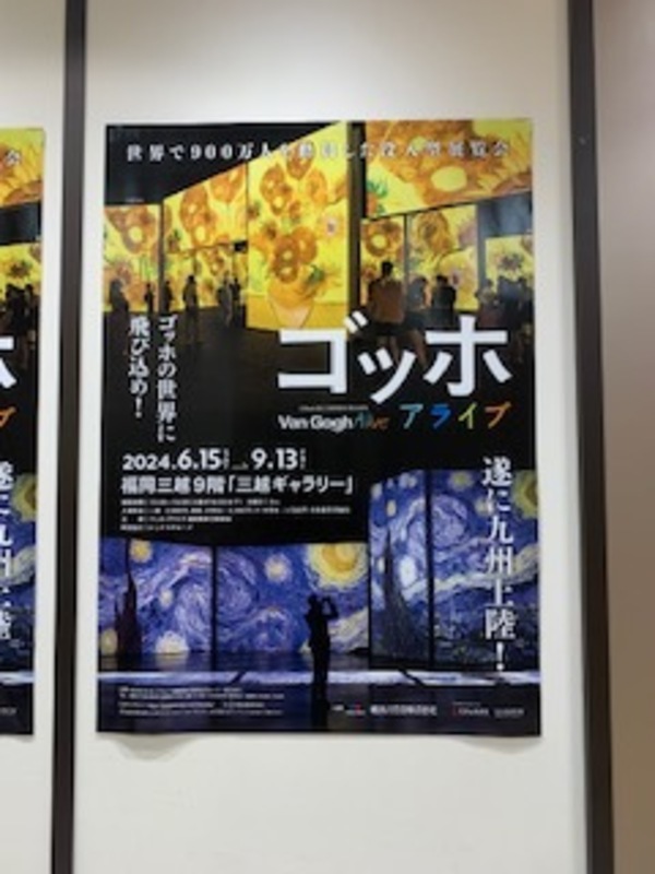 最高気温35℃超えの暑さにもかかわらず、「芸術の秋」ということで、福岡三越9階催事場で開催されていた『ゴッホ・アライブ展』にパートナーと出かけました。