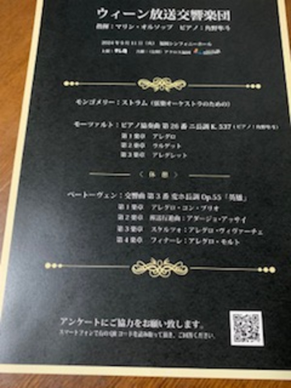 アクロス福岡シンフォニーホール9月11日19時開演「マリン・オルソップ指揮ウィーン放送交響楽団with角野隼斗」コンサートに出かけました。