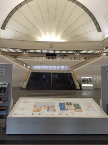 エントランスから入場すると 右手にチケット売り場と事務所、 左手にスーベニアショップ、 正面に案内板とオペラハウスのような階段。